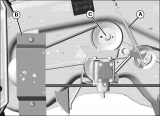 • 54D mower: Remove center bolt (C) on sheave(s) to be replaced.