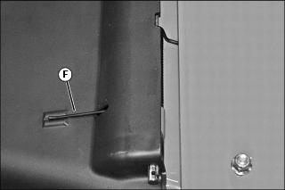3. Insert long end (F) of spring through hole in discharge chute and push pin into spring.