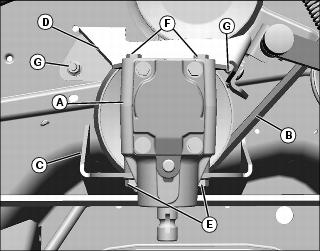 3. Loosely install two M10x25 bolts (F) through rear bracket (D) into gearbox.