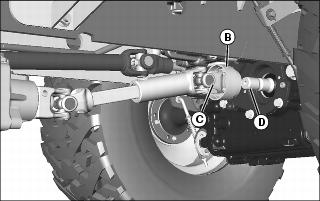 IMPORTANT: Avoid damage! Do not use the front draft link assembly (D) as a handle to move or reposition the mower.