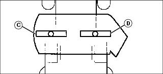8. Turn left blade (C) as shown. Hold drive belt and turn right blade (D) as shown. Take blade tip to surface measurement on both blades.