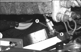 a. Remove retaining pins (E) from left and right rear turnbuckles (F).
