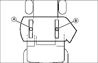 7. Turn left blade (A) as shown. Hold drive belt and turn right blade (B) as shown. Take blade tip to surface measurement on both ends of each blade.