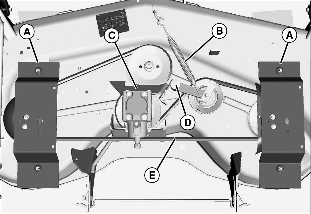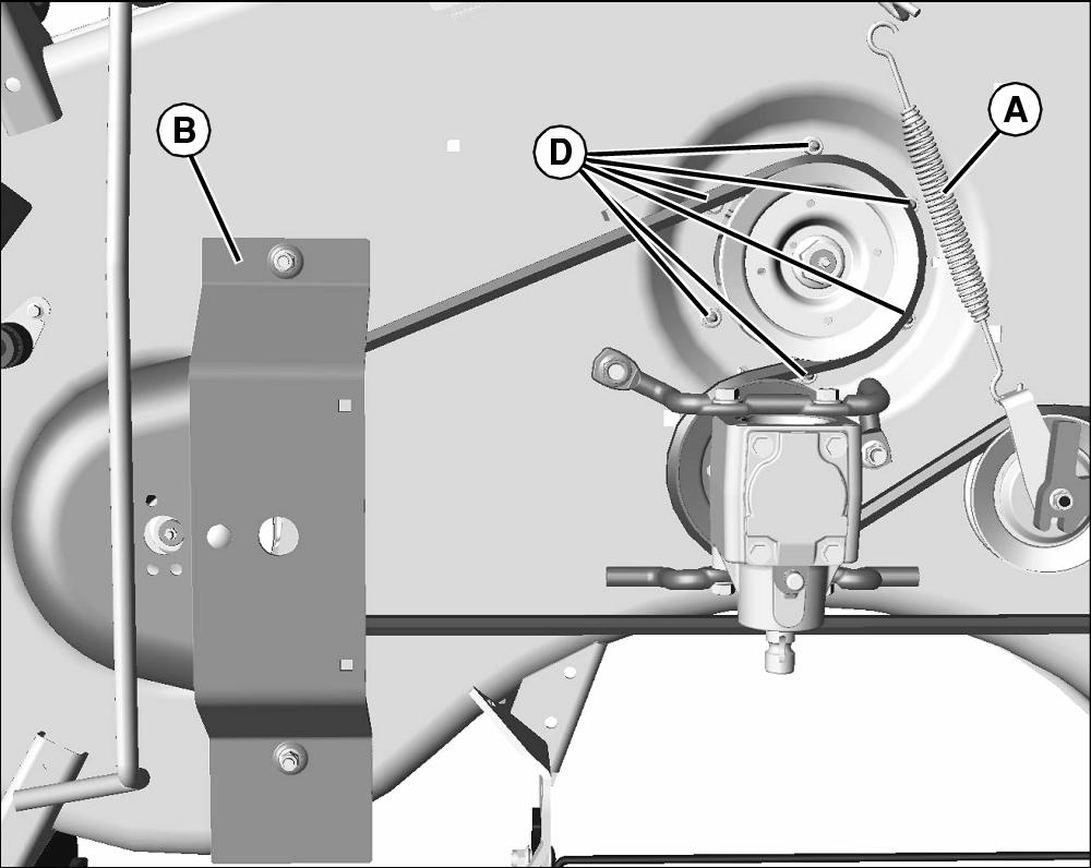 • 60D mower: Remove six bolts (D) on sheave(s) to be replaced.