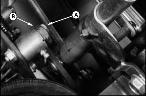 4. Remove the belt from the front sheave (B) and the rear sheave.