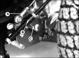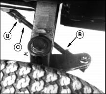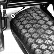 4. Check the clearance (A) between the left tire and the rod. Clearance should be 6-13 mm (1/4-1/2 in).