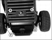 6. Turn the jam nuts (D) on the rod until the trunnion fits into the brake arm. Your Front Mower will have two jam nuts.