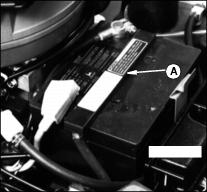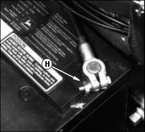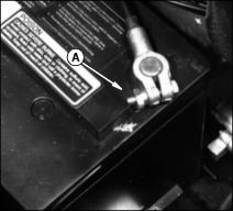 2. Loosen the bolt (A) and disconnect the negative cable from the terminal.