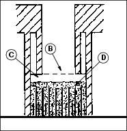 3. Electrolyte (C) should be 6 mm (1/4 in.) above plates (D).