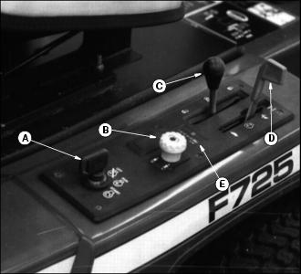 B - PTO Switch - Engages the attachments.