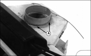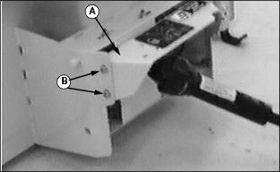 · 400 and F900 Series: Install driveshaft shield (A) on snowblower and fasten with four M8 x 20 mm carriage bolts (B) and lock nuts. (Two on each side.)