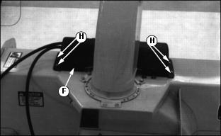 AssemblyRemove Snowblower from Crate1. Remove discharge chute from crate by removing two bolts and washers. Discard this hardware. The following parts are in the bag of parts: See your Front Hitch Kit Installation Instructions for assembling the following hardware: · Large Spring Locking Pin (Used with Front Hitch Kit.) · Tether Assembly (Used with Front Hitch Kit.) The above parts are used to restrict the hitch from angling with the snowblower. Identify Drive Assembly Parts (300 Series, 420 and 430)Parts listed below are found in the bag of parts: Identify Drive Assembly Parts (400 and F900 Series)Parts listed below are found in the bag of parts: Install Discharge Chute1. Put a light coat of John Deere Moly High Temperature EP Grease or an equivalent onto discharge chute base (A). 2. Lay cables (B) over snowblower shell. 3. Put discharge chute (C) on base. with chute opening facing to the LEFT. You MUST begin with chute facing to the LEFT (as viewed from tractor seat) to get proper rotation of the chute. 4. Install three large clips (D), and fasten with six self tapping flange hex head bolts (E). NOTE: When removing the black cable shield (F) an angle bracket (G) will fall from underneath the snowblower. This bracket needs to be installed again when the black cable shield is installed. 6. Remove black cable shield (F) by removing four bolts (H) and nuts. NOTE: DO NOT install the black cable shield back on snowblower until after chute installation is complete and you have verified that chute rotation is correct. 7. Slide black cable shield away from pulley's. 8. Check cables to make sure they are still installed on pulleys. Installing Discharge Chute Cables1. Stand behind snowblower. Take left-hand cable (A) and wrap around chute clockwise. 2. Use locking pliers and pull cable tight around threaded stud, and behind lock nut, and washer (B). 4. Wrap right-hand cable (C) around chute counterclockwise. 5. Use locking pliers and pull cable tight around threaded stud, and behind lock nut, and washer(D). NOTE: The snowblower needs to be INSTALLED on the Tractor/Front Mower before completing Items 7-9. If chute does not turn EQUALLY in BOTH directions after assembly, loosen nut, pull cable ends tighter, then tighten nuts. 7. Check for EQUAL turning of chute in BOTH directions.