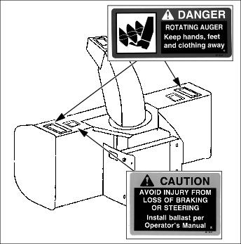 Safety SignsSafety-Alert SymbolRead and recognize safety information. Be alert to the potential for personal injury when you see this safety-alert symbol. On your machine safety labels, the words DANGER, WARNING, and CAUTION are used with this safety-alert symbol. DANGER identifies the most serious hazards. In this manual, the word CAUTION and this symbol call attention to safety messages. Machine Safety LabelsCertification LabelThis OPEI label on your snow blower indicates that this model has been certified by an independent laboratory for compliance with American National Standard B-71.3-1995, "Safety Specifications" for Snowblowers. |