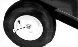 Lubricate each wheel bearing (A) with John Deere mulitpurpose grease or an equivalent.