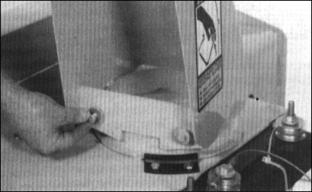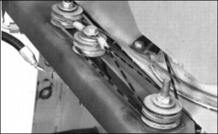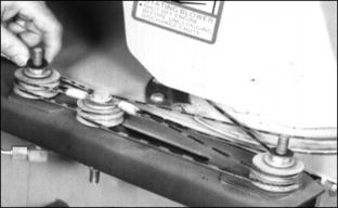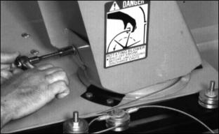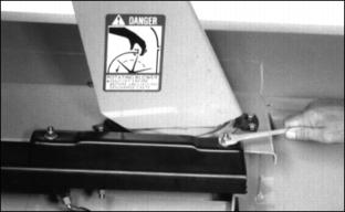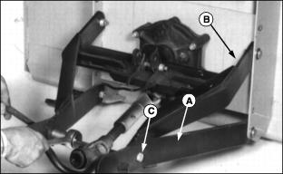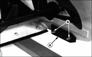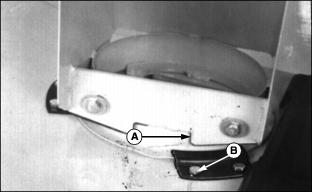 AssemblyInstall Driveshaft1. Put key in slot of gearbox shaft. NOTE: NEVER-SEEZ is a trademark of the NEVER-SEEZ Compound Corp. 2. Apply a film of NEVER-SEEZ lubricant on shaft. 3. Align keyway in driveshaft coupler with key in gearbox shaft. 5. Fasten driveshaft with 5/16 x 2-in. cap screw and stop nut. Install Lift ArmsNOTE: Put flat washer under head of cap screw with lock nut to inside. 1. Install lower lift arms (A) inbottom hole of snowblower housing with two 1/2 x 1-1/2-in. cap screws, flat washers, and lock nuts. 2. Install upper lift arms (B) in the second hole from the top of snowblower housing with two 1/2 x 1-1/2-in. cap screws, flat washers, and lock nuts. 3. Fasten upper lift arm to lower lift arm with two 1/2 x 1-3/4-in. cap screws (C) and lock nuts. Install Chute1. Apply John Deere Moly High Temperature EP Grease or equivalent on the bottom and inside flange of discharge chute. 2. Put discharge chute over auger opening. 3. Install three clips with six 5/16 x3/4-in. cap screws, lock washers, and nuts. 5. Turn chute so spout faces left. 6. Turn two 5/16 x 3/4-in. cap screws with flat washers into chute threaded holes two or three turns. Route Chute Cables1. Move chute so tab (A) on chute is in line with edge of cap screw (B). Chute opening will be to the left. 3. Use locking pliers to pull cable tight. ˇ Around bottom center pulley. 6. Use locking pliers to pull cable tight. Install Cable Shield1. Install two flat washers on cable shield bolts. 2. Install cable shield, two washers, and nuts. Install Drift BladeFasten drift blades to auger housing with four 1/4 x 1-in. bolts and four1/4-in. lock nuts. Install Wear Plate (Optional)NOTE: Wear plates may be stacked up to three plates on each side. When you install one wear plate use3/8 x 1-in. cap screws. When you install two wear plates use 3/8 x 1-3/8-in. cap screws. When you install three wear plates use 3/8 x 1-5/8-in. cap screws. |