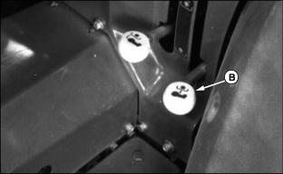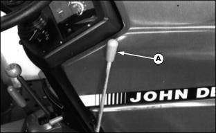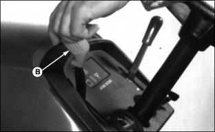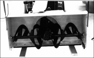 OperatingOperate Safelyˇ Check vehicle brake action before you operate. Adjust or service brakes as necessary. ˇ Inspect machine before you operate. Be sure hardware is tight. Repair or replace damaged, badly worn, or missing parts. Be sure guards and shields are in good condition and fastened in place. Make any necessary adjustments before you operate. ˇ Clear work area of objects that might be thrown. Keep people and pets out of the work area. Stop machine if anyone enters the area. ˇ If you hit an object, stop the machine and inspect it. Make repairs before you operate. Keep machine properly maintained and in good working order. ˇ DO NOT leave machine unattended when it is running. ˇ Only operate during daylight or with good artificial light. ˇ DO NOT let anyone, especially children, ride on machine or vehicle. ˇ DO NOT let children or an untrained person operate machine. ˇ Do not wear radio or music headphones while operating the machine. Safe operation requires your full attention. ˇ Do not blow snow toward people, pets, vehicles or buildings. Wear Appropriate Clothingˇ Wear close fitting clothing and safety equipment appropriate for the job. ˇ Loud noise can cause impairment or loss of hearing, wear a suitable protective device such as earplugs. Stay Clear of Rotating DrivelinesEntanglement in rotating driveline can cause serious injury or death: ˇ Wear close fitting clothing. ˇ STOP the engine and be sure PTO driveline is stopped before getting near it. Avoid Injury from Moving Partsˇ Keep hands, feet and clothing away from snowthrower and discharge chute when auger is turning. ˇ Stop auger when you are not throwing snow. ˇ Stop vehicle engine before you unplug, repair, or adjust snowthrower. Avoid Injury from Hitting Obstructionsˇ Raise snowthrower when you drive between jobs. ˇ Slow down when you remove snow. Adjusting SpoutNOTE: When you blow snow from a rough surface, adjust spout to point down so gravel or other surface material is not thrown a long distance. 2. Move spout to desired position. Adjusting Height of Scraper Blade2. Pull hydraulic lever back to raise snowblower. 3. Put blocks under scraper blade on each side. 4. Lower snowblower onto blocks. NOTE: Both runners must be in the same position. 6. Remove two bolts from each runner. 7. Put bolts in one of the following positions: ˇ LOW POSITION: Scraper bladewill touch surface. ˇ MID POSITION: Scraper blade will be approximately 13 mm (1/2 in.) above surface. ˇ HIGH POSITION: Turn runner 180°. Scraper blade will be approximately 25 mm (1 in.) above surface. 8. Install nuts but do not tighten. 9. START engine. Raise snowblower. 10. STOP engine. Remove blocks. Lower snowblower to ground. Raising and Lowering Snowblower1. Pull SCV lever to raise snowblower. 2. Push SCV lever forward to lower snowblower. 3. Push control lever all the way forward to float position. Lever will stay in this position until you pull it back to neutral position. Picture Note: 670 and 770 Tractor 4. Float position allows snowblower to follow contours of ground. Turning Chute1. Push SCV lever to right to turn chute to right. Picture Note: 670 and 770 Tractor 2. Pull SCV to left to turn lever to left. 3. Chute should turn 100° to each side. Starting SnowblowerNOTE: See your tractor operator's manual for location and operation of controls. Picture Note: 670 and 770 Tractor 2. Move throttle lever (A) to one-fourth engine speed position. 3. Lower snowblower to ground. 4. Move PTO lever (B) to ON position to ENGAGE snowblower. Picture Note: 670 and 770 Tractor 5. Move throttle lever to FAST position for best engine and snowblower performance. 8. Blow snow at a safe travel speed. Stopping SnowblowerNOTE: If engine and snowblower are running, snowblower must stop when you get off operator's seat. If not, have the electrical system checked. 2. Put PTO lever in OFF position. 4. Wait for auger and blower to stop. 5. Lower snowblower to ground. Snowblowing TipsOperate engine at full throttle. Operate tractor at a safe travel speed. Slow down when you operate on slopes, before you make a turn, and when you operate close to buildings or trees. For snowblowing in drifts, drift blade will cut through drifted snow and help break down drifts. Blow snow downwind, if possible. Put hydraulic control lever forward to float position when you are snowblowing on irregular ground. Adjust runners for proper scraper blade clearance before you remove snow from irregular ground. Travel slow when blowing wet, heavy snow to prevent plugging. Clean snowblower after each use. Look carefully behind tractor before you back up, especially for children. Raise snowblower when driving between jobs. Do not try to clear snow from a steep slope. Do not operate near edge of a ditch, or bank. Keep away from drop-offs, holes, rocks, and roots. Watch for hidden hazards. Transporting Tractor and Snowblower |
