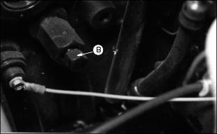 1. STOP engine. Let engine cool. 3. Slowly remove radiator cap. 4. Open radiator petcock (A). Drain coolant into a bucket. 5. Loosen block drain (B) one or two turns and drain coolant from engine block. 6. After all coolant has drained, close radiator petcock and tighten block drain. 7. Flush cooling system. (See Flushing Cooling System this section.) Flushing Cooling System