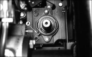 Lubricate fitting (A) on PTO shaft bearing with one or two shots of John Deere Multipurpose Grease or equivalent. |