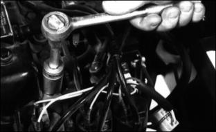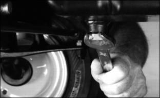 6. Install new primary element. (See Replacing Primary Element this section.) 7. Install washer and wing nut. Cleaning And Gapping Spark Plugs2. Disconnect spark plug wires from spark plugs. 4. Clean spark plugs carefully with a wire brush. · Pitted or damaged electrodes. NOTE: In Canada, replace spark plugs with resistor-type plugs only. 6. Replace spark plugs as necessary. 7. Check plug gap with a wire feeler gauge. 8. Gap must be 0.76 mm ( 0.030 in.). 9. To change gap, move the outer electrode toward the center electrode. 10. Install and tighten spark plugs to 20 N·m (15 lb-ft). Changing Fuel FilterNOTE: Some models fuel filter is located as shown in photo. Other models fuel filter is located under seat. 4. Loosen and slide hose clamps (A) away from filter (B). 6. Remove screw (C) to remove filter. 7. Install new filter with screw and connect hoses to filter. 8. Slide clamps against filter and tighten clamps. Checking PTO Belt Tension1. The end of plastic gauge (A) must be aligned with ends of springs (B) for proper belt tension. 2. Loosen nuts (C). Tighten nuts (D) equally to get proper belt tension. 3. Tighten nuts (C) against nuts (D). 4. Check PTO belts for wear damage; replace if necessary. GreaseUse grease based on the expected air temperature range during the service interval. The following greases are preferred: · John Deere MOLY HIGH TEMPERATURE EP GREASE · John Deere HIGH TEMPERATURE EP GREASE Other greases may be used if they meet one of the following: · SAE Multipurpose EP Grease with a maximum of 5% molybdenum disulfide Greases meeting Military Specification MIL-G-10924F may be used as arctic grease. Lubricating Engine DriveshaftLubricate U-Joint fitting (A) with one or two shots of John Deere Multipurpose Grease or equivalent. Lubricating PTO Shaft Bearing
