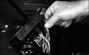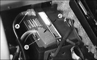 3. Electrolyte (C) should be 6 mm (1/4 in.) above plates (D). 4. If necessary, add distilled water. Charging The Battery SafelyFollow instructions on the battery charger or in the charger operator's manual, or use the instructions below as a guide. ˇ Wait until the battery has warmed to room temperature. Do not charge a frozen battery. ˇ Check the electrolyte level of each cell. (See Checking Battery Electrolyte Level in this section.) ˇ Install the battery cap(s) on the battery. Turn OFF and unplug the charger before you connect cables to the battery or disconnect cables from the battery. If the battery becomes warm to touch during charging: ˇ Stop charging the battery until it cools. Charging The Battery Safely1. Remove and clean battery. (See Cleaning Or Replacing Battery in this section.) 2. Check electrolyte level. (See Checking Battery Electrolyte Level in this section.) 3. Leave cell caps on battery while you charge it. 4. Connect positive (+) charger cable to positive (+) battery terminal. 5. Connect negative (-) charger cable to negative (-) battery terminal. 7. Charge battery. See Charging Rates on the next page. 8. Unplug charger cord. Remove charger cables. Charging RatesSee your battery charger or charger operator's manual for information on charging. Or read the information below to FULLY CHARGE your battery. For a charger with a CURRENT ADJUSTMENT CONTROL: ˇ Adjust the control to 10 amps. ˇ Charge the battery for 6-8 hours. For a charger with a switch for MAINTENANCE FREE, DEEP CYCLE, or NORMAL (CONVENTIONAL) setting: ˇ Use the MAINTENANCE FREE or DEEP CYCLE setting. For a charger with SLOW CHARGE, FAST CHARGE, or BOOST CHARGE setting: ˇ DO NOT use the BOOST CHARGE setting. ˇ Use the SLOW CHARGE setting: -For a charger rated at less than 10 amps. -For a charger rated at 10 amps. NOTE: Your charger may have an AUTOMATIC STOP to prevent charging the battery: ˇ When the battery is fully charged OR ˇ When the battery is not in condition to take a charge. Using Booster BatteryConnect positive (+) booster cable to booster battery positive (+) post (D). Connect the other end of positive (+) booster cable to vehicle battery positive (+) post (A). Connect negative (-) booster cable to booster battery negative (-) post (C). Connect the other end of negative (-) booster cable to engine ground (B) away from battery. Changing Fuses4. Install new fuse. Make sure you have correct size and amperage. Changing Indicator Bulb1. Remove two screws (A) to remove indicator panel (B). |