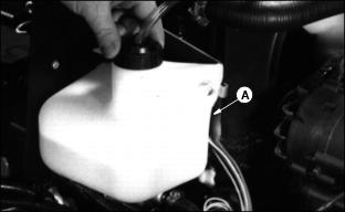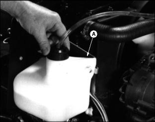 2. Coolant level must be 25-51 mm (1-2 in) in recovery tank (A).