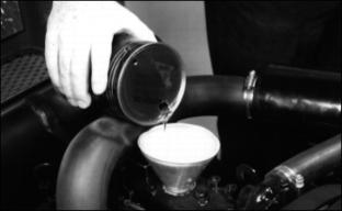 4. Add 50 percent ethylene glycol (without stop-leak additive) antifreeze and 50 percent water to proper level.