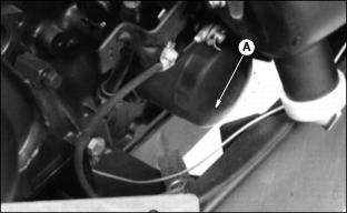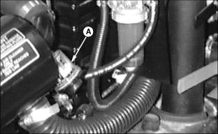 4. Open radiator petcock (A). Drain coolant into a bucket.