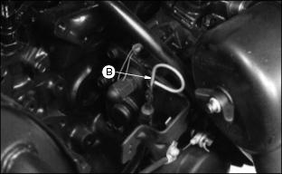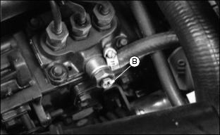 5. Loosen bleeder screw (B) at fuel injection pump.