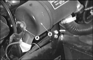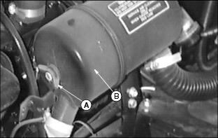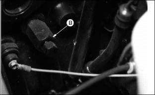 5. Loosen block drain (B) one or two turns and drain coolant from engine block.