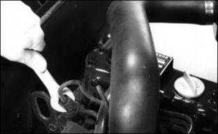 6. After all coolant has drained, close radiator petcock and tighten block drain.
