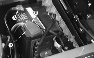 3. Electrolyte (B) should be 6 mm (1/4 in.) above plates (C). 4. If necessary, add distilled water. Charging The BatteryFollow instructions on the battery charger or in the charger operator's manual, or use the instructions below as a guide. ˇ Wait until the battery has warmed to room temperature. Do not charge a frozen battery. ˇ Check the electrolyte level of each cell. (See Checking Battery Electrolyte Level in this section.) ˇ Install the battery cap(s) on the battery. Turn OFF and unplug the charger before you connect cables to the battery or disconnect cables from the battery. Charging The Battery (Continued)If the battery becomes warm to touch during charging: ˇ Stop charging the battery until it cools. 1. Remove and clean battery. (See Cleaning Or Replacing Battery in this section.) 2. Check electrolyte level. (See Checking Battery Electrolyte Level in this section.) 3. Leave cell caps on battery while you charge it. 4. Connect positive (+) charger cable to positive (+) battery terminal. 5. Connect negative (-) charger cable to negative (-) battery terminal. 7. Charge battery. See CHARGING RATES on the next page. 8. Unplug charger cord. Remove charger cables. Charging RatesSee your battery charger or charger operator's manual for information on charging. Or read the information below to FULLY CHARGE your battery. For a charger with a CURRENT ADJUSTMENT CONTROL: ˇ Adjust the control to 10 amps. ˇ Charge the battery for 6-8 hours. For a charger with a switch for MAINTENANCE FREE, DEEP CYCLE, or NORMAL (CONVENTIONAL) setting: ˇ Use the MAINTENANCE FREE or DEEP CYCLE setting. For a charger with SLOW CHARGE, FAST CHARGE, or BOOST CHARGE setting: ˇ DO NOT use the BOOST CHARGE setting. ˇ Use the SLOW CHARGE setting: - For a charger rated at less than 10 amps. - For a charger rated at 10 amps. NOTE: Your charger may have an AUTOMATIC STOP to prevent charging the battery: ˇ When the battery is fully charged OR ˇ When the battery is not in condition to take a charge. Using Booster Battery