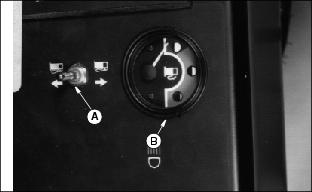 5. Let engine idle for 2 minutes. 6. Turn key switch (A) to OFF position (B). Driving Front Mower