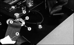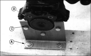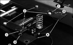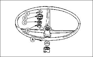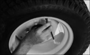 1. Remove the battery from the vehicle. 2. Remove and discard tape from across battery cells. 3. Remove and discard blue cell caps. ˇ Only use battery acid with a 1.265 specific gravity. Slowly add acid (B) to each cell. The solution should be 6 mm (1/4 in.) above plates (C), but NO HIGHER THAN 6 mm (1/4 in.) from the bottom of the filler neck (A). 5. Install the battery manifold cap from the bag of parts. Be sure manifold cap hose is behind positive cable. 6. Charge the battery for a MINIMUM of 30 minutes at 5-10 amps. If your battery charger has a Deep Cycle or Maintenance Free setting, use this setting to charge the battery. Failure to charge the battery before use will reduce battery performance and life. ˇ Connect negative cable last. 8. Connect red positive (+) cable to battery. Apply petroleum jelly or silicone spray to terminal to prevent corrosion. Make sure connection is tight. Push red positive cover over positive terminal. 9. Connect black negative (-) cable to battery. Apply petroleum jelly or silicone spray to terminal to prevent corrosion. Make sure connection is tight. Install The Steering Wheelˇ B - Nut (Tighten to 13-16 N*m (10 -12 lb*ft) Install The ROPS1. Install ROPS (A) angle toward rear of tractor. 2. Put four flange head cap screws (B) through holes in ROPS. 3. Install spacers (C) and lock nuts (D) (bolt head to the front and spacers to the rear). 4. Tighten bolts to 136 Nˇm (100 lb-ft). Install The Seat Belt1. Install belt mounting brackets (A) by putting hole (B) over bottom tab of rubber bumper (C). 2. Fasten brackets to suspension using four M8x16 bolts and nuts (D). NOTE: Install belt halves so white tags (A) face up. 4. Install belt halves to brackets by putting M10x30 bolts (B) in rear holes. 5. Install spacers (C) on bolts. 6. Install belt brackets (D) over spacers. Install The Seat2. Fasten seat to base with four 5/16 x 5/8 in. bolts (A). Install Wheels (Rear Axle) And (Front Axle)1. Remove and discard bolts (A) on each side. 3. Remove and discard plugs (B). 4. Remove and save bolts (C). Use these bolts, and others from bag of parts, to fasten wheels to hub, valve stems out. ˇ On rear axle: 81-95 Nˇm (60-70 lb-ft). ˇ On front axle: 136-163 Nˇm (100-120 lb-ft). Checking Tire Pressure2. Check tire pressure with an accurate gauge. |