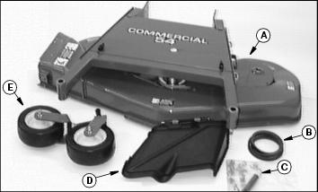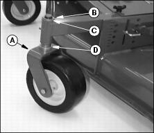 1. Install both caster wheels (A) into mower deck frame:
