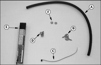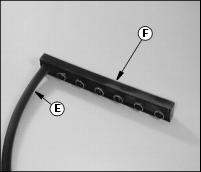 6. Install battery vent hose (E) on battery cap (F).