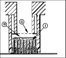 · Slowly add acid (H) to each cell. The solution should be 6 mm (1/4 in.) above plates (I), but NO HIGHER THAN 6 mm (1/4 in.) from the bottom of the filler neck (G).