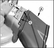 c. Install and tighten two M8 x 20 carriage bolts and M8 locknuts (C).