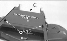 a. Position discharge chute assembly (A) on mower deck.