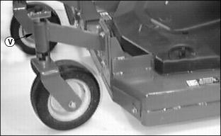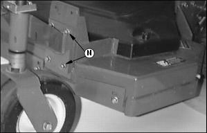 NOTE: The caster wheel supports are attached to the mower deck at the factory. They should be attached to the bottom set of mounting holes. If necessary, remove them and install in the top mounting holes.