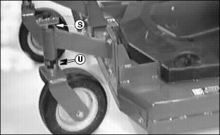 · Decks set at 76 mm (3 in), use one (1) spacer at location (U).