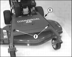 · Use holes (F) for a cutting height of 102-114 mm (4-4 1/2 in).