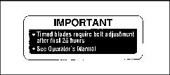 IMPORTANT: Avoid damage! Express the importance to the customer of checking the Mower Deck Timing and a properly tensioned Timing Belt. Due to belt stretching the customer should perform this service after the first 25 hours of use and at every 100 hour interval.