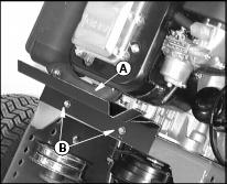 1. Attach heat shield (A) to power unit frame using two M6 self-tapping screws (B).