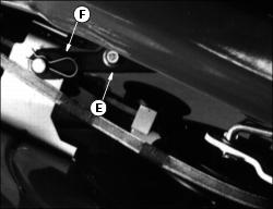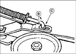 11. Install nut (H) and front belt guide (I). Adjust so there is 1.6-3.2 mm (1/16-1/8-in.) clearance to upper part of engine sheave.