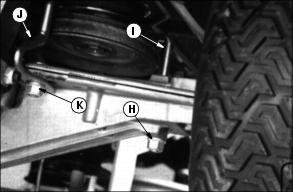 12. Install belt guides (I) with carriage bolt (J) and nuts (K).