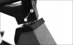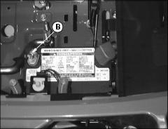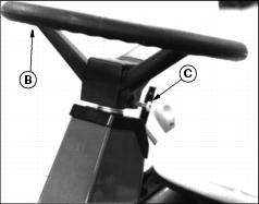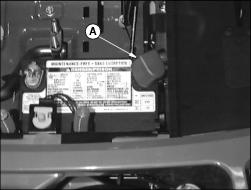 IMPORTANT: Avoid damage! Make sure negative (-) Black battery cable (B) is routed under rod (C) as shown.