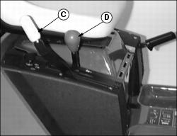 4. Pull PTO lever (C) completely rearward to OFF (p) position.