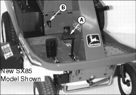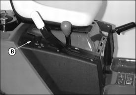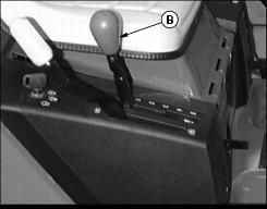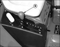 4. Move shift lever (B) to R (REVERSE) position or to the desired FORWARD speed.