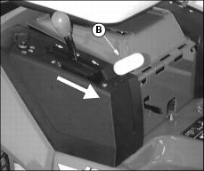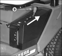 5. Slowly push PTO lever (B) completely forward to RUN (P) position.