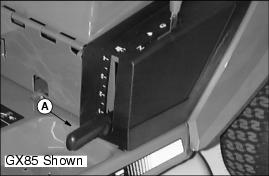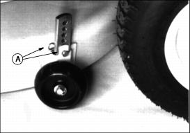 1. Remove spring locking pins and drilled pins (A) from each mower wheel.
